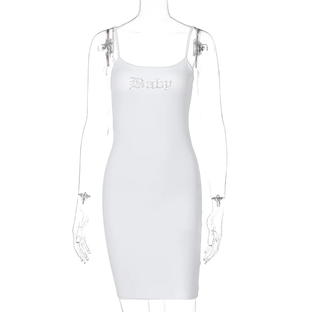 ALLNeon-Vestidos cortos de estética de los años 2000, vestidos cortos rosas con diamantes de imitación, moda Y2K, vestido camisola con tirantes y letras, ropa de calle bonita de verano, atuendo Kawaii